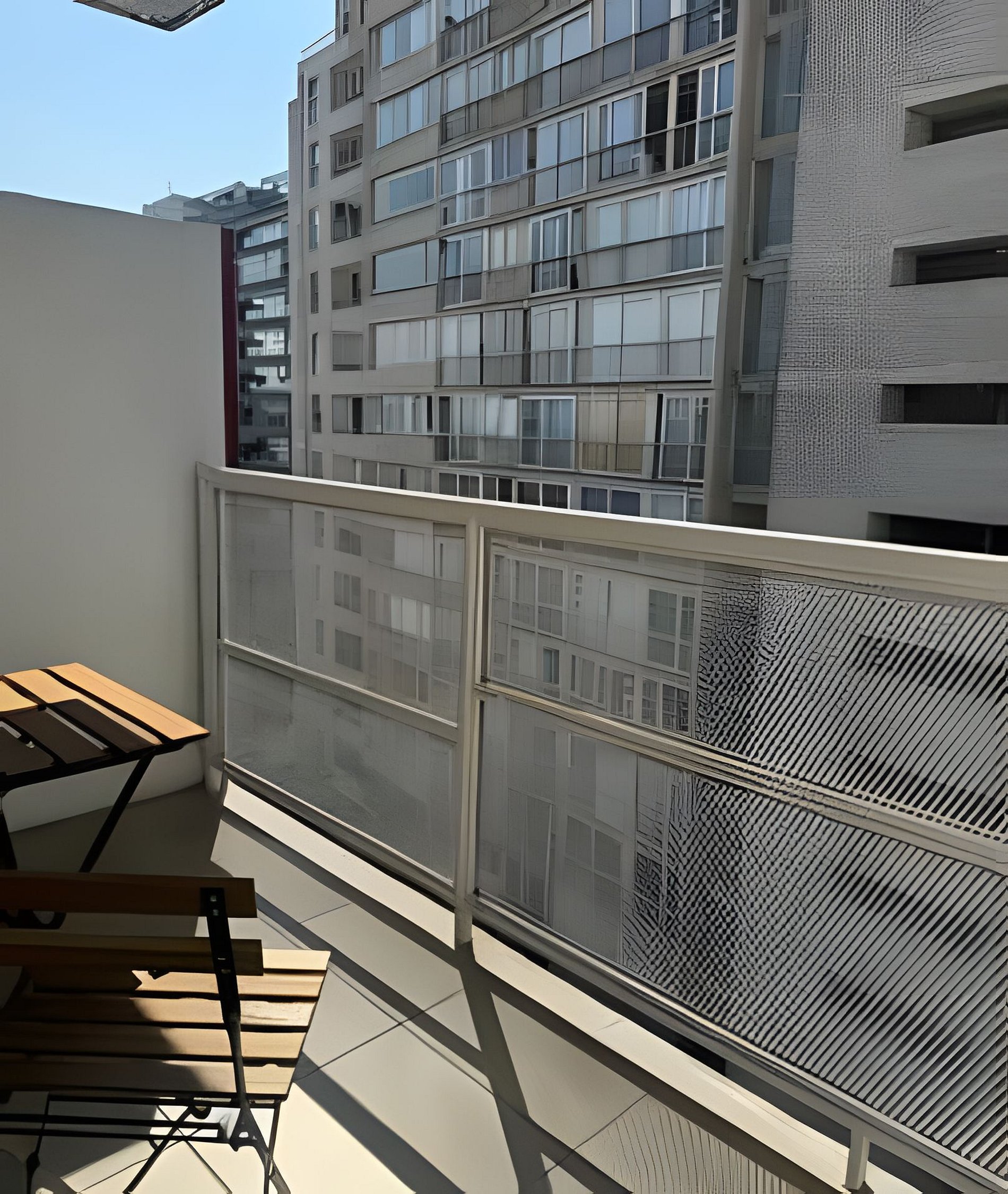 Estimados huéspedes, aparte del alojamiento, Ustedes podrán acceder a la terraza del edificio donde se encuentran mesas y sillas para reposar y disfrutar de la vista a la cordillera.